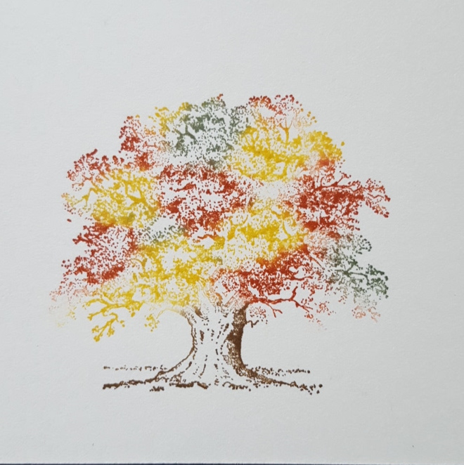 There are three stamps that make up this gorgeous flower. If I were making this card at home I would most likely use the one ink pad. Stamping it in first and second generation shades of colour.